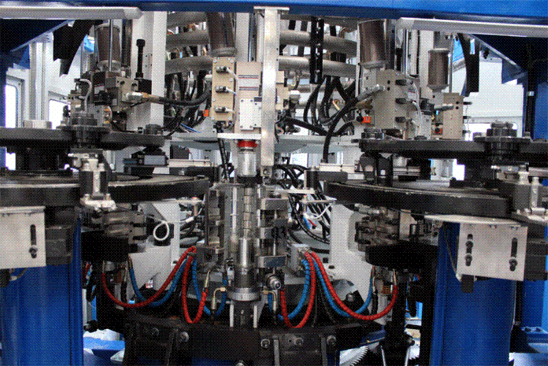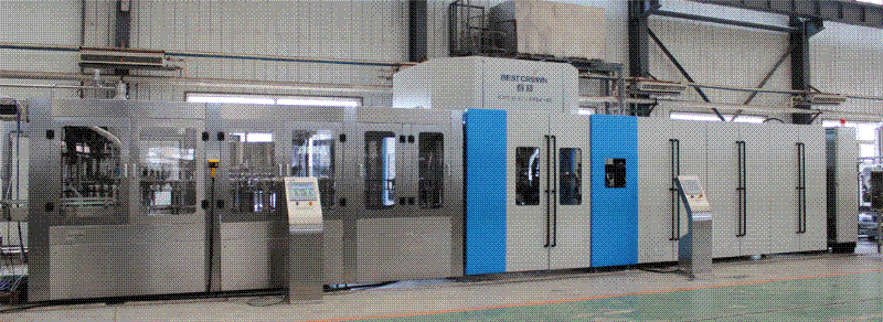 吹瓶部分实施了机械手双层轨道曲线设计、吹瓶机模号加装压力检测装置、主吹轮气源进出采用旋转式动静密封气套(发明专利产品)、吹瓶机主吹轮采用旋转式机械补偿水套等多项技改措施,大大加强了吹瓶运行的安全性、稳定性,并延长了关键部件的使用寿命。